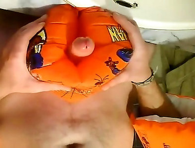 Orange inflatable waterwing banging jism