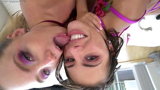 Ash-blonde girl-girl eats honies wet snatch