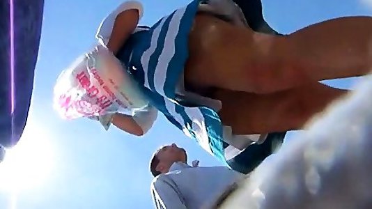 It is time to wank off a bit during nice upskirt solo flash of lusty Shelly