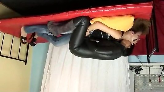 Lez public dresse in thigh high footwear found herself a marionette to have fun with