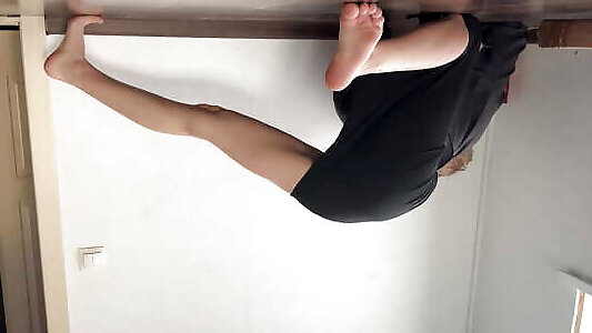 Maid is cleaning after the ballet class. Wet sundress, onanism.