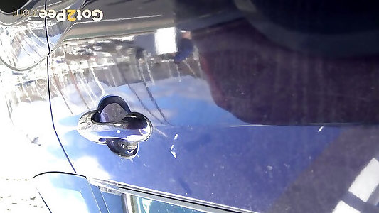 Gorgeous dark haired milky lady pissing at the parking pile
