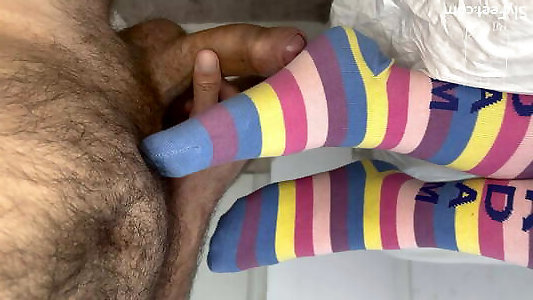 This is an authentic sockjob cumming inside and my stepsister sucked the cum. Hairy veiny cock