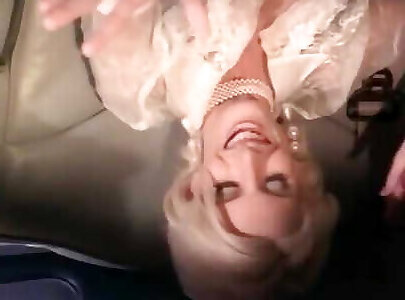 Striking towheaded with perfect orbs and culo insanely bangs a dark-hued stick
