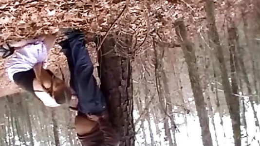 Outstanding German blonde sucking and taking a hard cock in the woods