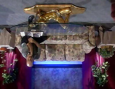 Buxomy female in fishnets rails dark-hued jizz-shotgun