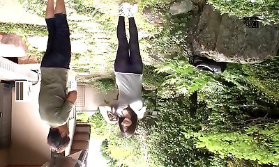 Husband Helps Japanese Wife With Grandpa Lover Outdoors