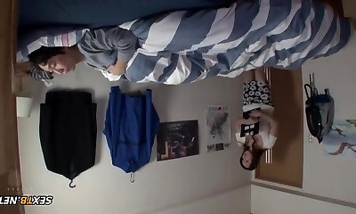Nerdy Chinese girl fucks with her classmate at his place